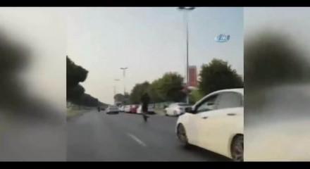 Bostancı sahil yolunda motosiklet sürücüsü yolda seyir halindeyken tek tekerlek üzerinde şov yaptı. Yaptığı şovla hem kendi, hemde diğer sürücülerin hayatını tehlikeye atan motorcu, yolda seyir halinde olan başka bir sürücü tarafından saniye saniye görüntülendi.
