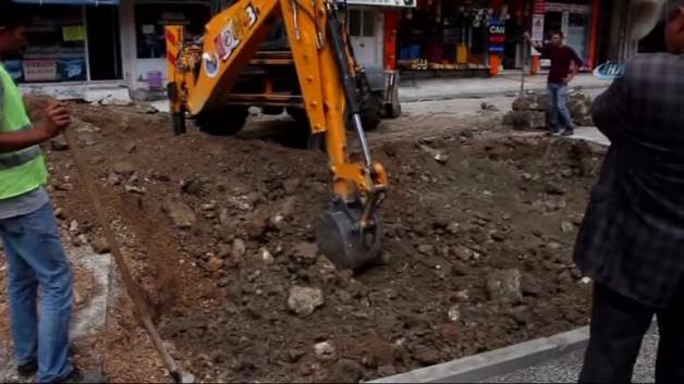 Mersin Büyükşehir Belediyesi tarafından Mut ilçesinde yol çalışması sırasında fark edilmeyerek toprak altına gömülen üzerinde yazı bulunan taş, yeniden kazı yapılarak çıkarıldı.