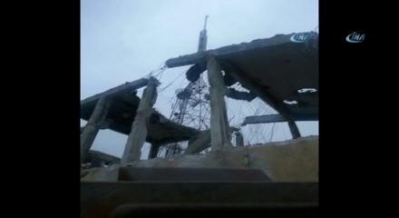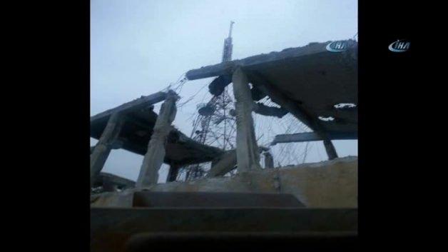 Afrin'de başlatılan "Zeytin Dalı Harekatı"nın 7. gününde, TV vericilerinin bulunduğu yerdeki binaya Türk bayrağı asıldı.