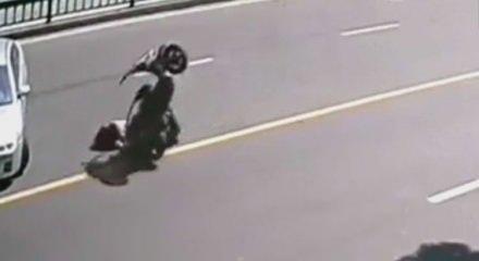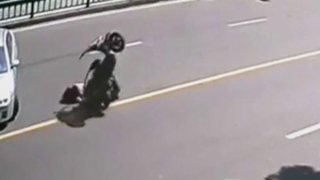 Anne, baba ve küçük kız çocuğundan oluşan bir aile motosikletle yol ortasında takla attı. Bu takla onları daha büyük bir faciadan kurtardı. İşte o görüntüler.