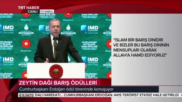 Cumhurbaşkanı Erdoğan, Zeytindağı Barış Ödülleri töreninde konuştu.