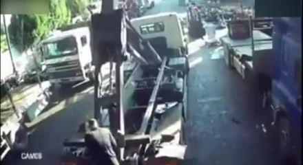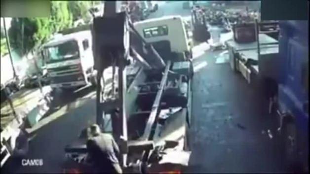 Kamyonetin arkasındaki düzenek bir anda hareket edince tonlarca ağırlıktaki parça işçinin üzerine düştü ve talihsiz adam orada yaşamını yitirdi. O anlar ise kameralara anbean yansıdı.