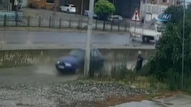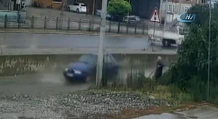 Samsun Sinop karayolunun servis yolunda meydana gelen olayda, 72 yaşındaki yaşlı bir adam yağmur dolayısıyla evinin önünde biriken suyu kürekle atmaya çalışırken otomobille yoldan geçen Ç.D. isimli şahsın kullandığı araç tarafından üzerine su sıçradı.