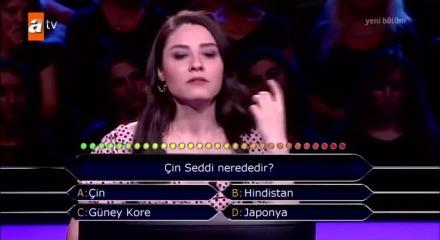 İlk joker hakkını seyirciden yana kullanan yarışmacı, istediği cevabı alamadı. Seyircinin sadece yüzde 51'i Çin cevabını verdi fakat yarışmacı Su Ayhan bu kez de telefon jokerini kullandı. Telefondaki arkadaşından Çin cevabını alan Ayhan, doğru şıkkı işaret ederek yarışmaya devam edebildi.