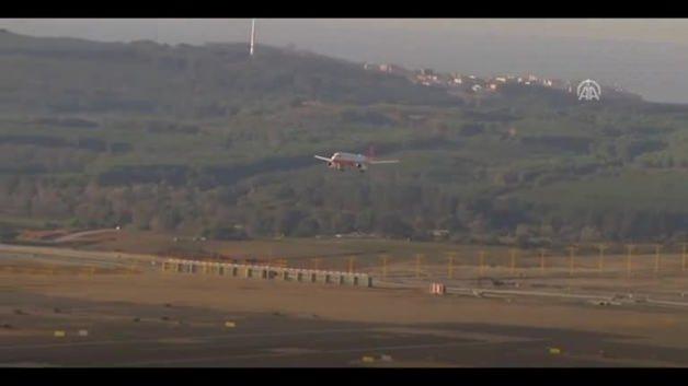 Cumhurbaşkanı Recep Tayyip Erdoğan'ı taşıyan 'CAN' uçağı, İstanbul'da açılışı yapılacak havalimanına teker koydu.