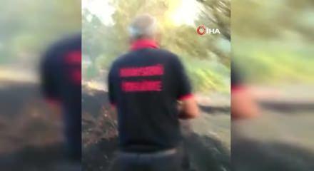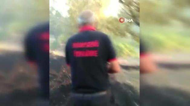 Kayseri'nin Melikgazi ilçesinde tarlada çıkan yangında yanmak üzere olan kaplumbağayı kurtaran itfaiye ekipleri, suda serinleterek kendine getirdi.