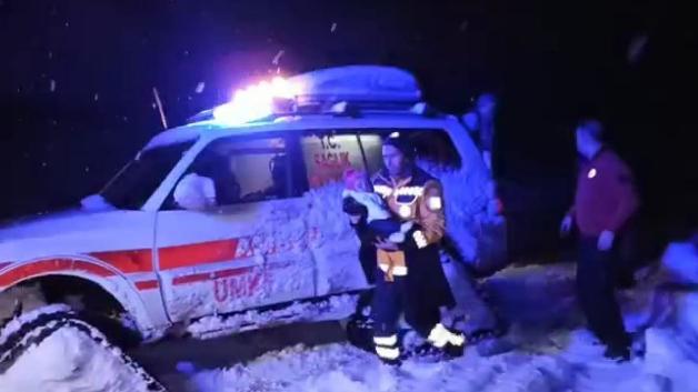 Bingöl'de dün geceden itibaren kar yağışı etkili oluyor. Kar yağışının yoğun olduğu Genç ilçesine bağlı Bayırlı köyünde solunum sıkıntısı yaşayan 6 aylık Yüsra Ataş hastaneye götürülemedi. Bunun üzerine aile, durumu 112 Acil Komuta Merkezi'ne bildirdi. Valilik ve İl Sağlık Müdürlüğü koordinesinde bölgeye Ulusal Medikal Kurtarma ekibi sevk edildi. UMKE ekibi, paletli ambulansla yaklaşık 3 saatlik çalışmanın ardından köyde mahsur kalan hasta bebeğe ulaştı. Evden alınan bebek ilçe devlet hastanesine kaldırıldı. Sağlık personeline teşekkür bebeğin dayısı Behçet Vergi, “Yeğenim hastalandı ve imdadına UMKE yetişti. Paletli ambulansla gelip yeğenimi aldılar. Sağlıkta çalışan tüm arkadaşlara teşekkür ediyoruz” dedi.
