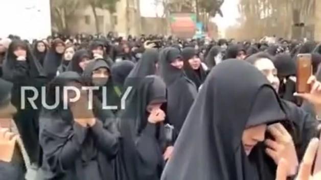 Cenaze töreninin düzenlendiği alanda kaydedilen görüntülerde bir grup kadın, Süleymani için gözyaşı döktü.