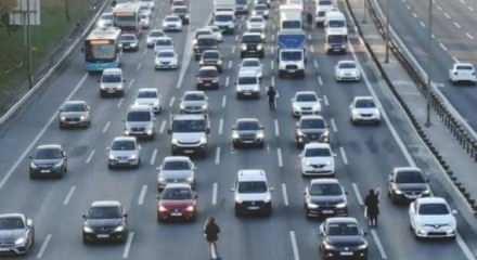 İstanbul'da trafiğin yoğun olduğu saatlerde su, simit, kağıt helva hatta şarj kablosu satan seyyar satıcılar günlük 100-150 lira kazanıyor. Özellikle mesai çıkışlarında satış yapan seyyar satıcılar hem trafiği hem de kendi canlarını tehlikeye atıyor. Kabahatler kanununa göre kendilerine 154 lira ceza kesilse de otoyollarda satışlara devam ediyorlar.
