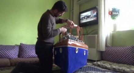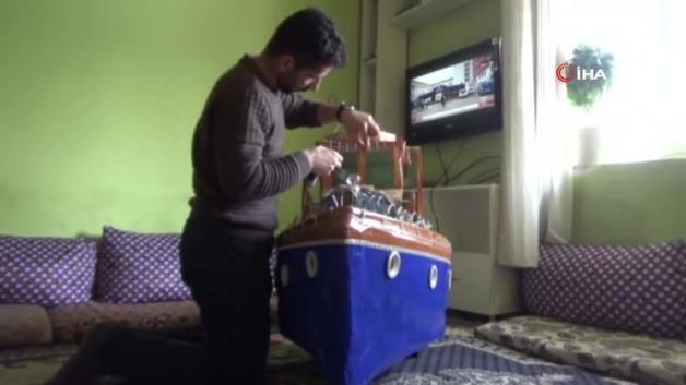 Hakkari'nin Yüksekova ilçesinde daha önce 15 Temmuz Şehitler Köprüsü'nü görmek isteyen kızı için köprünün maketini yapan Aydın Güder, şimdi de gemi maketi yaptı.