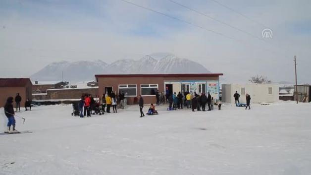 Bitlis'te hafta sonunu fırsat bilen kayakseverler, El Aman Hanı Kayak Merkezinde kayak ve snowboard yapıp kızakla kaymanın keyfini çıkardı.
