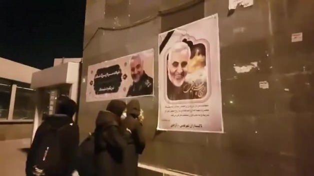 Göstericiler, Tahran'da ABD tarafından öldürülen Kasım Süleymani'nin posterini yırttı.