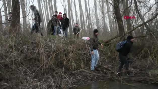 Edirne'de sınıra yürüyen göçmenlerin Meriç Nehri yatağından geçişi böyle görüntülendi.