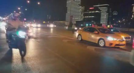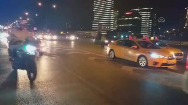 Göztepe köprüsünde toplanan ve 15 Temmuz Şehitler Köprüsü'nden geçen taksicilere daha sonra Gayrettepe’deki konvoy da katıldı. 500 araçtan oluşan konvoy, ardından Beyoğlu’na geldi. İstiklal Caddesi'ndeki Rusya Federasyonu İstanbul Başkonsolosluğu önüne siyah çelenk bırakılmasının ardından Odakule’ye geçen taksiciler, burada şehitler için saygı duruşunda bulundu ve İstiklal Marşı okudu. İstanbul Taksiciler Esnaf Odası Başkanı Eyüp Aksu, burada yaptığı açıklamada, Bahar Kalkanı Harekatı'na ve Mehmetçiğe destek vermek amacıyla bir araya geldiklerini söyledi. Aksu, taksici esnafının her zaman devletin ve milletin emrinde olduğunu ifade etti.