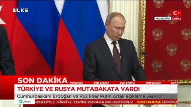 Cumhurbaşkanı Erdoğan, Moskova'da Rusya Devlet Başkanı Putin ile baş başa ve heyetler arası görüşmelerin ardından ortak basın toplantısı düzenledi.