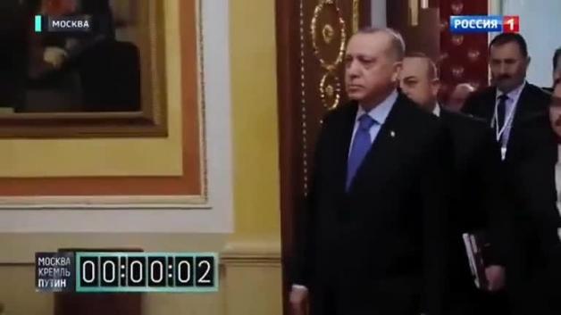 Sosyal medyada Rus televizyonu Rossiya 1 kanalının geçtiği görüntülerde Cumhurbaşkanı Erdoğan'ın, Rusya Devlet Başkanı Putin tarafından koridorda 2 dakika bekletildiği iddia edildi.