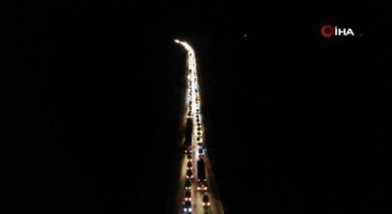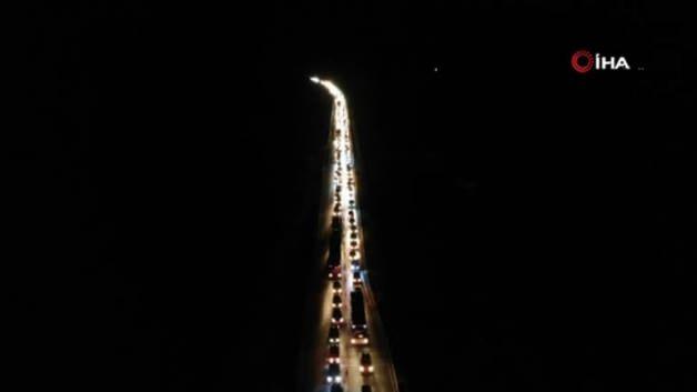 7 kilometrelik araç kuyruğu havadan görüntülendi