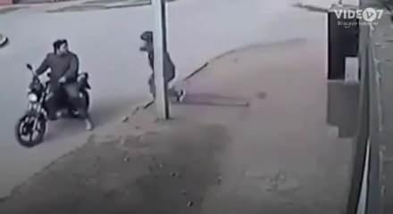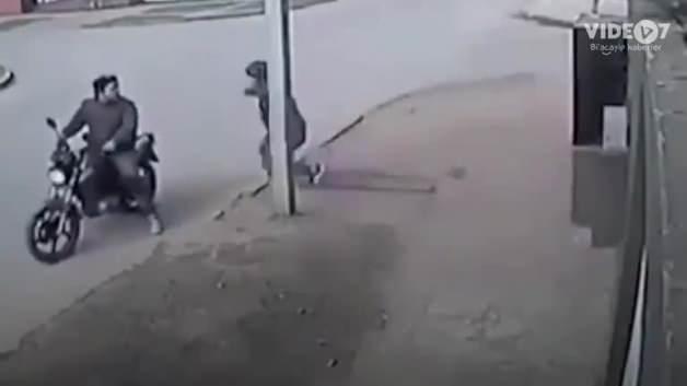 Kapkaççı saldırısına uğrayan bu kadın çantasını çatıya atarak saldırganları etkisiz hale getiriyor.