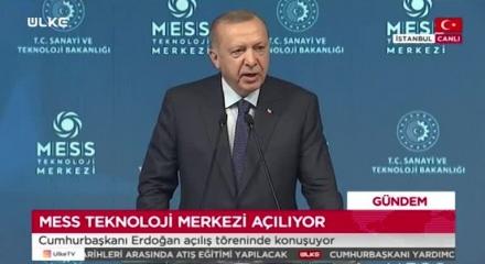 Cumhurbaşkanı Recep Tayyip Erdoğan, MESS Teknoloji Merkezi'nde düzenlenen Teknoloji Odaklı Sanayi Hamlesi: MESS Teknoloji Merkezi ve 40 Fabrika Açılış Töreni'nde açıklamalarda bulunuyor. "Kovid salgınında birçok ülke durgunluk yaşarken, Türk ekonomisi toparlanma sürecini başarıyla yürütüyor." diyen Erdoğan, "Ne özel sektörümüz ne de kamu kuruluşlarımız yatırımlarına ara vermedi, vermiyor." ifadelerini kullandı.