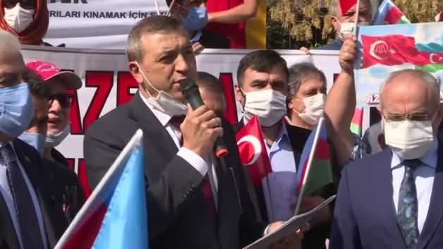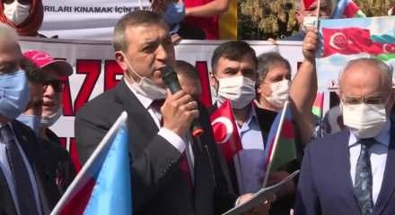 "Can Azerbaycan'ımız, yiğit evlatlarıyla tekrar kendi göbeğini kendi kesecek. Yaptıkları asla yanına kar kalmayacak. Azerbaycan'ın sokaklarına, cepheye baktığımız zaman görüyoruz ki Azerbaycan'ın yiğit evlatları kararlı. Herkesten tek bir ses çıkıyor 'Ya Karabağ ya ölüm'. Bu kararlılığı bozamayacaklar."