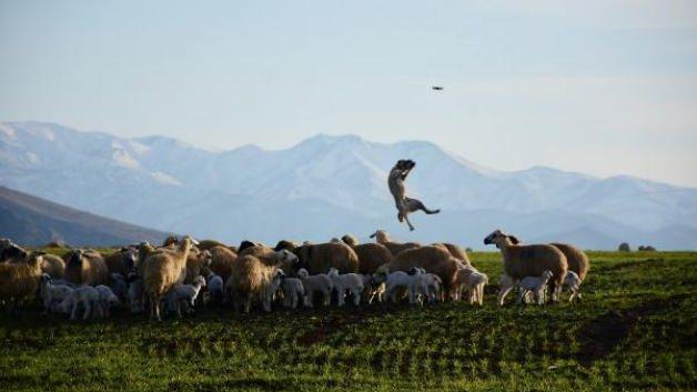 Sürü sahibi Seçkin Ekici, köpeğinin koyunlara hiçbir şeyi yaklaştırmadığını belirterek, "Köpeğimi Sivas'tan getirttim. Gerçekten harika bir köpek. Demirören Haber Ajansı (DHA) koyun ve kuzularımızı çekmek için bu bölgeye geldi. Dron, koyunların üstüne geldiği anda köpek 5 metre sıçrayarak havada kaptı" diye konuştu.