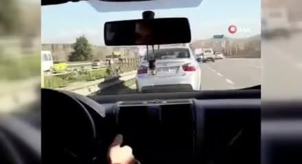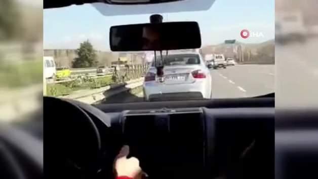 Çekmeköy-Taşdelen Otoban yolunda bir sürücüsü, trafiğin yoğun olduğu öğle saatlerinde aracıyla makas atarak ilerledi. Araç içerisindeki arkadaşı tarafından görüntülenen sürücünün, yüksek ses müzik eşliğinde tempo tutarak trafiği tehlikeye attığı anlar yürekleri ağza getirdi. Genç sürücünün trafikteki tehlikeli oyununa diğer araç sürücüleri ise korna çalarak tepki gösterdi.