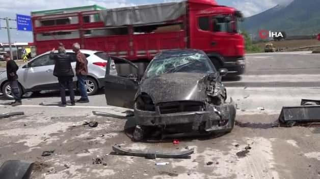 Bursa'nın Orhangazi ilçesinde meydana gelen trafik kazasında bir otomobil takla attı. Bir başka araç ise takla atan araca çarptı. Kazada biri çocuk 3 kişi yaralandı.