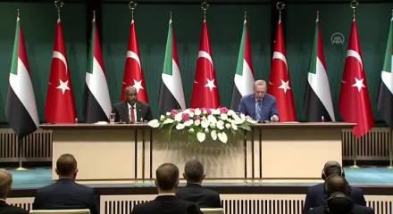 Cumhurbaşkanı Recep Tayyip Erdoğan ile Sudan Egemenlik Konseyi Başkanı Orgeneral Abdulfettah el-Burhan, ortak basın toplantısı düzenledi. Erdoğan, "Kardeş Sudan halkının ve yönetiminin yanında olmaya, gelecekte dayanışma içinde ilişkileri sürdürmeye kararlıyız" dedi.