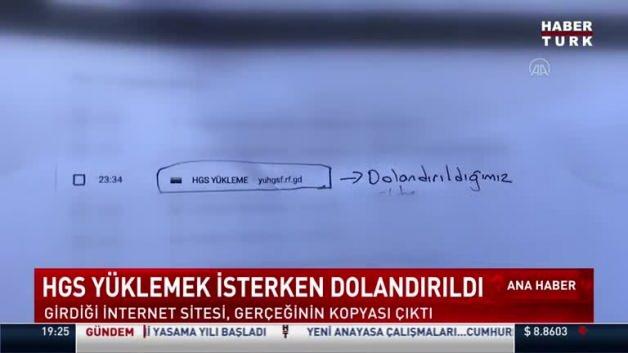 İzmir Konak'ta yaşayan Esen Boyacı, HGS bakiye yükleme sitesini bire bir kopyalayan dolandırıcıların ağlarına düştü. Arama motoruna HGS yükleme yazan Boyacı, internette karşısına çıkan ilk linke tıkladı. Boyacı'nın girdiği site, HGS'nin orjinal sitesinin bire bir kopyası çıktı. Banka bilgilerini girdikten sonra cep telefonuna gelen şifreyi giren Boyacı bir an 8 bin 499 lira kartından harcama yapıldığını görünce şoka uğradı.