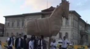 Sivaslı gençler atık kartondan 5 buçuk metre yüksekliğinde truva atı yaptı.