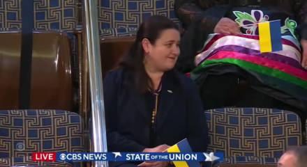 ABD Başkanı Joe Biden'ın Kongre'deki ulusa sesleniş konuşmasına davet ettiği Ukrayna'nın ABD Büyükelçisi Oksana Markarova, ayakta alkışlandı.