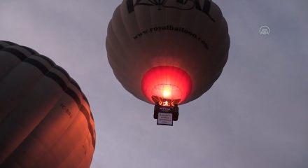 Kapadokya’da sıcak hava balonları bugün '8 Mart Dünya Kadınlar Günü Kutlu olsun' pankartlarıyla havalandı.
