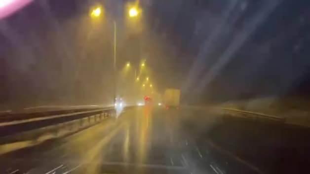 TEM otoyolu Ümraniye mevkisinde yolları kaplayan kar ve etkili yağış nedeniyle sürücüler ilerlemekte güçlük çekiyor.