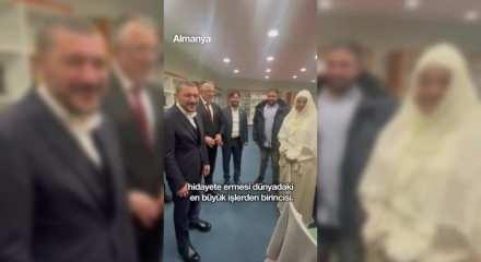 Nevşehirli Salih isimli bir Türk, eşini İslamiyet’e davet etti. Eşinin davetini kabul eden kadın, 5 yıl önce Almanya'nın Kuzey Ren Vestfalya eyaletinde inşa edilen Aachen Ditib Yunus Emre Camisi'nde Rüveyda ismini alarak İslamiyet'i kabul etti. AK Parti heyeti de bu muazzam olaya şahit oldu.