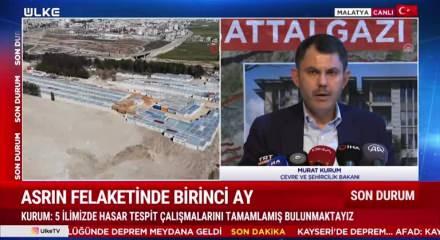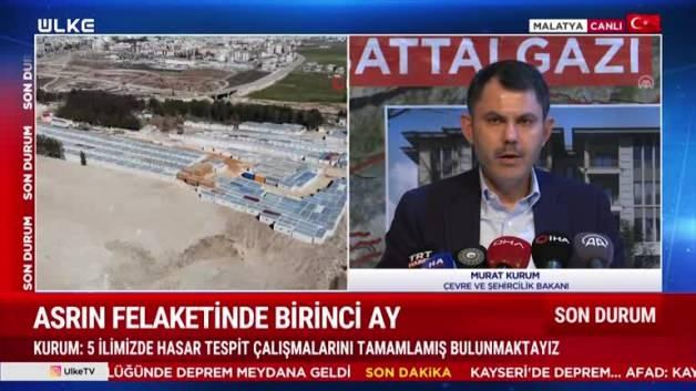 Bakan Murat Kurum, "Malatya'da konteyner kent uygulamamız devam ediyor. İnşallah sıcak sularımız akacak bu kentimizde. Bir yandan hasar tespit çalışmalarımızı da yönetiyoruz. Depremden etkilenen illerimizde hasar tespit çalışmaları çerçevesinde Gaziantep, Kahramanmaraş, Adıyaman, Osmaniye ve Kilis olmak üzere 5 ilimizde hasar tespit çalışmalarımız bugünden itibaren tamamlandı" dedi.