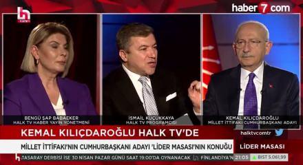 Programda "Muharrem İnce ile görüşecek misiniz? Nedir ondan beklentiniz?" sorusuna yanıt veren Kılıçdaroğlu, "Ben bütün partileri ziyaret ederim. Memleket Partisi'ni de ziyaret edeceğim. Olması gereken şu: Birinci turda bu işi alıp Türkiye'yi ikinci kez yormamak lazım. Doğrusu budur" diyerek üstü kapalı çağrı yaptı.