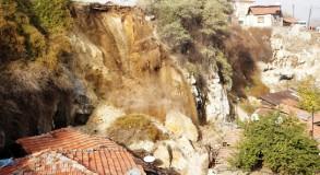 Ankara'nın Altındağ ilçesinde meydana gelen toprak kayması sonucu kopan dev kayalar, bir gecekonduyu yerle bir etti.