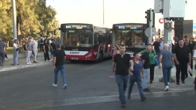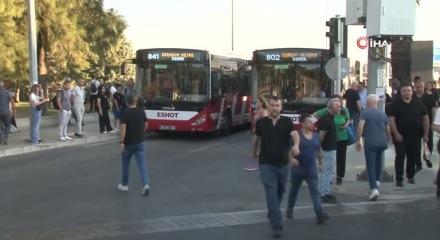 İzmir'de metro ve tramvay çalışanlarının başlatmış olduğu grevin ikinci gününde, otobüs duraklarında insan yoğunluğu yaşanırken, kentin ana arterlerinde ise trafik durma noktasına geldi.