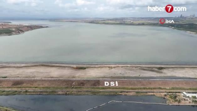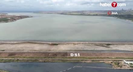 Çekilme yaşanan Büyükçekmece Baraj Gölü'nde de çarpıcı görüntüler ortaya çıktı. Yüzde 15 seviyelerine inen baraj gölünde kara parçaları ortaya çıktı.