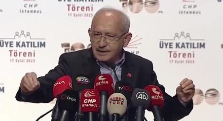 Kılıçdaroğlu, Şişli'deki Nazım Hikmet Kültür ve Sanat Evi'nde düzenlenen üye katılım törenindeki konuşmasında, CHP'li olmak için önce adaletli olmak gerektiğini belirterek adaletsiz dünyanın büyük sorunlar yarattığını ifade etti.