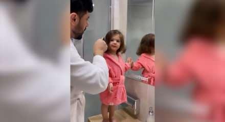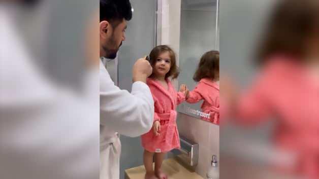 Kızının saçlarını tarayan baba sosyal medyada viral oldu.