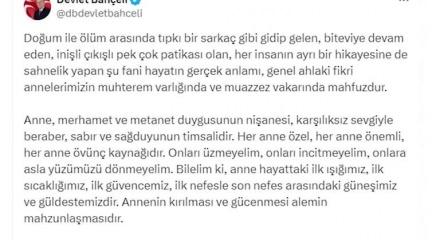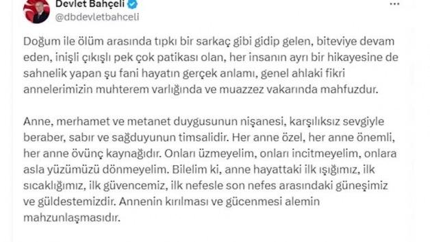 MHP Lideri Bahçeli, Anneler Günü nedeniyle X hesabından paylaşımda bulundu.