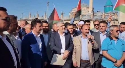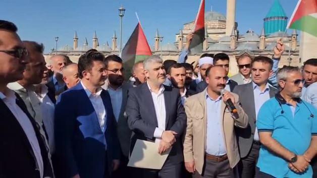 Konya'da, Evrensel Hafızlar Derneği üyelerince İsrail'in Gazze'ye yönelik saldırıları protesto edildi.