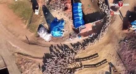 Ankara’nın Bala ilçesine bağlı Kesikköprü Mahallesi’nde, sütten kesilmeyen kuzuların sabah anneleriyle buluşma anları dron ile görüntülendi.