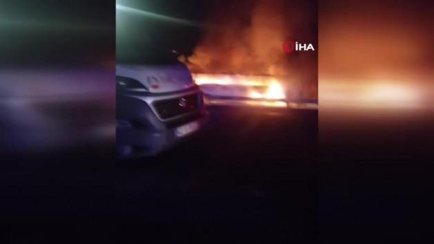 Konya’nın Seydişehir ilçesinde bir yolcu otobüsü alevlere teslim oldu.