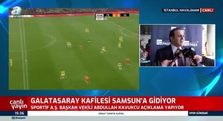 Galatasaray, Trendyol Süper Lig'in 31. haftasında deplasmanda Samsunspor'la karşılaşacak. Hazırlıklarını tamamlayan sarı-kırmızılılar maç için Samsun'a gitti. Havaalanında Galatasaray Sportif A.Ş. Başkan Vekili Abdullah Kavukcu açıklamalarda bulundu.
