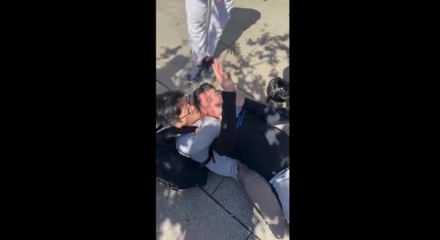 İspanya'da bir Çinli turist, eşyasını çalmaya çalışan hırsızı yakalayarak polise teslim etti. Çinlinin hırsızın boğazını sıkarak nefesi kesip kesip bıraktığı görüldü.