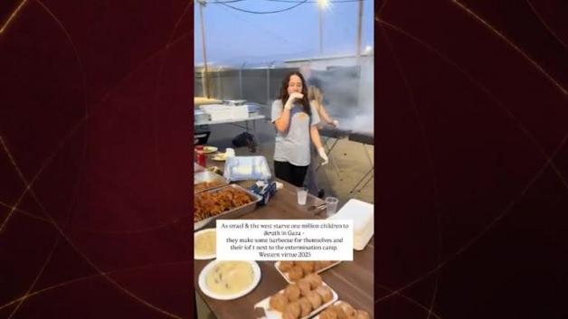 Filistin’in Gazze Şeridi’nde İsrail'in politikaları yüzünden bebekler, yaşlılar ve hastalar kıtlık yaşarken İsrail askerleri işgal ettikleri ve bombaladıkları yerlerde, toplama kampının yanında mangal partisi verdiler. Bir milyona yakın çocuğun açlık çektiği kampların yanında mangallarını yakan İsrailliler keyif içinde yemeklerini yediler.