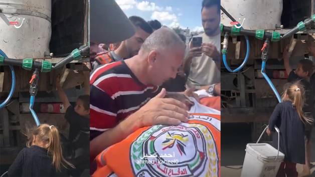 Başka bir videoda ise su dağıtımı yapan aracın peşinden birkaç damla daha su alabilmek için koşan çocuklar sosyal medyada izleyenleri kahretti.