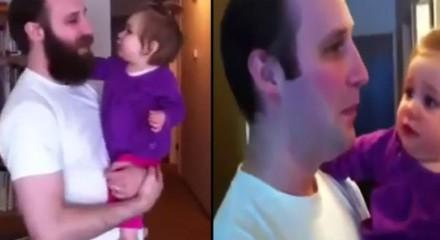Uzun süredir sakal uzatan baba, kendisini bu haliyle görmeye alışan kızına bir sürpriz yapıyor. Bakın bebek babasındaki değişim nasıl tepki veriyor.
